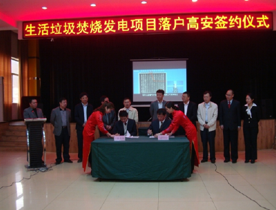 3月24日,我司在江西省高安市高安賓館三樓會議室舉行高安市垃圾焚燒發(fā)電項目簽約儀式。據(jù)悉,該項目總投資3.2億元人民幣,日處理垃圾量600噸,年發(fā)電量達7000萬度,項目將于2015年投資運營。